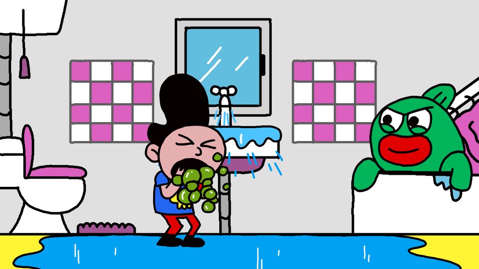 Elvis & Benny do not want to eat sprouts and dig in. A trench war with Babette starts and the ending is a big surprise. Full title: Brussels sprouts in Flanders Fields.