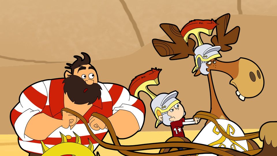The Mayor has asked Jack to take his camel and chariot out for a canter. He can’t do it himself because he got injured in his clash with Crusher Cooper. He tells Jack not to go near the racing arena. The Moose falls out of a tree to join Jack.