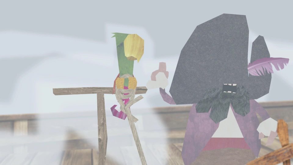 The ship runs into the thick fog. Crew bumps and blunders on the ship as they can't see anything. They make plans on how they can navigate. They tie a string on Pollo's leg and send him flying above the fog.