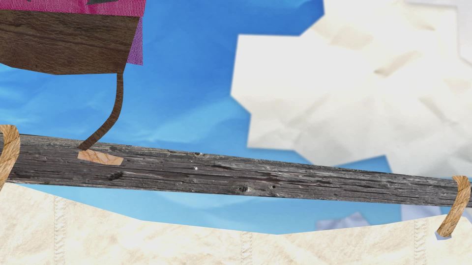 Habhab is trying to navigate. Seagulls mess with Pollo, who's squawking makes Habhab lose concentration and ship drifts off course. The ship almost runs into a rock, barely evading disaster.