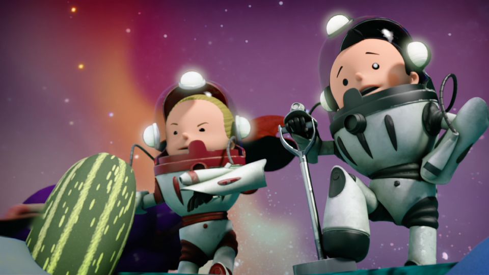 Little Luke and Lucy are in their gardening class when they realise they have been transported to an outer space organic adventure! The world becomes more and more unusual as they encounter enormous space vegetables and green aliens on the strangest intergalactic gardening experiment!