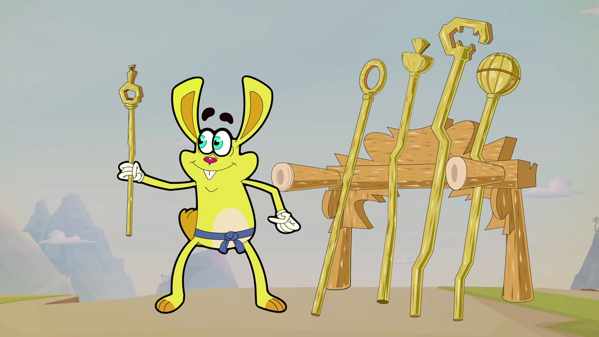 Tik, Tak, and Tail are students at a Shaolin school set up high on a mountain. We see the entrance of it has a picture of a Shaolin master. The same Shaolin master is balancing himself on top of a pole with one leg.